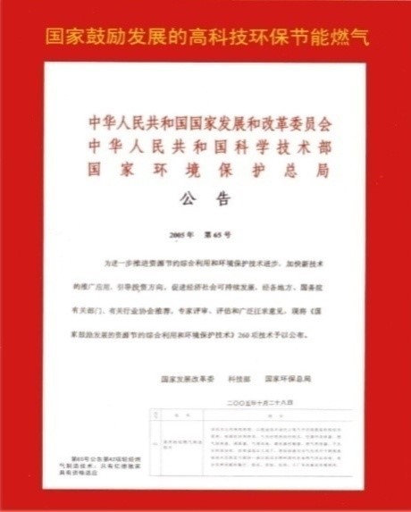 答 冷制輕烴燃氣2005年定入《鼓 勵發展的資源節約綜合利用和環境保護技術項目》42項: